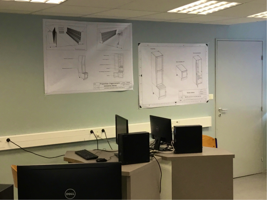 - quelques salles de classe à côté des ateliers, des vestiaires, des bennes de recyclage, un CDI. Dans les salles de classe il y avait un ordinateur par élève, notamment pour faire des plans en 3D.
